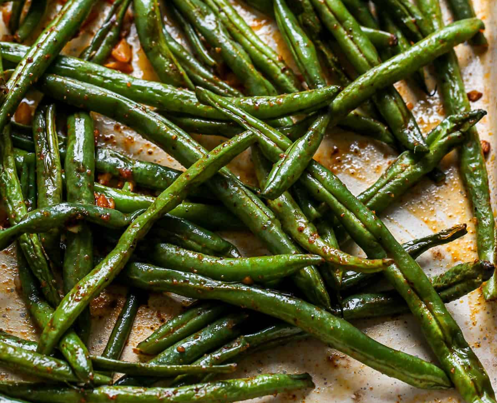 These green beans take on a non-traditional preparation style in that they are roasted. Season them with the ingredients listed or your favorite spices for this quick and easy side dish.