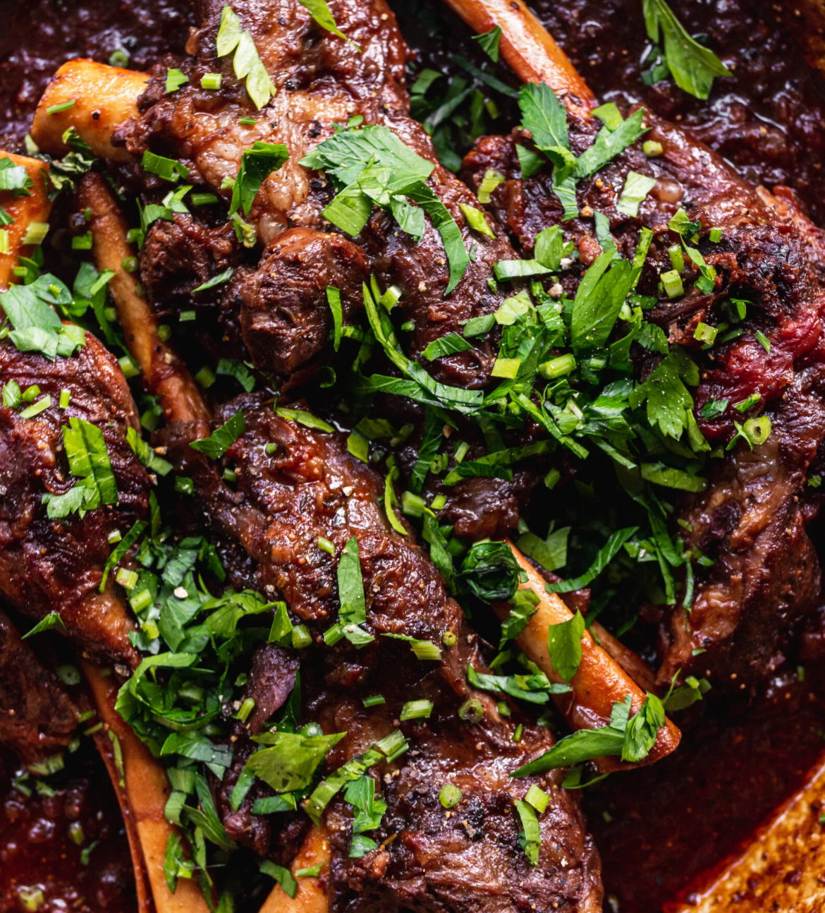 This lamb shank recipe is rich and full of flavor from herbs and figs for a hint of sweetness. Braised low and slow, this will work well over mashed potatoes.