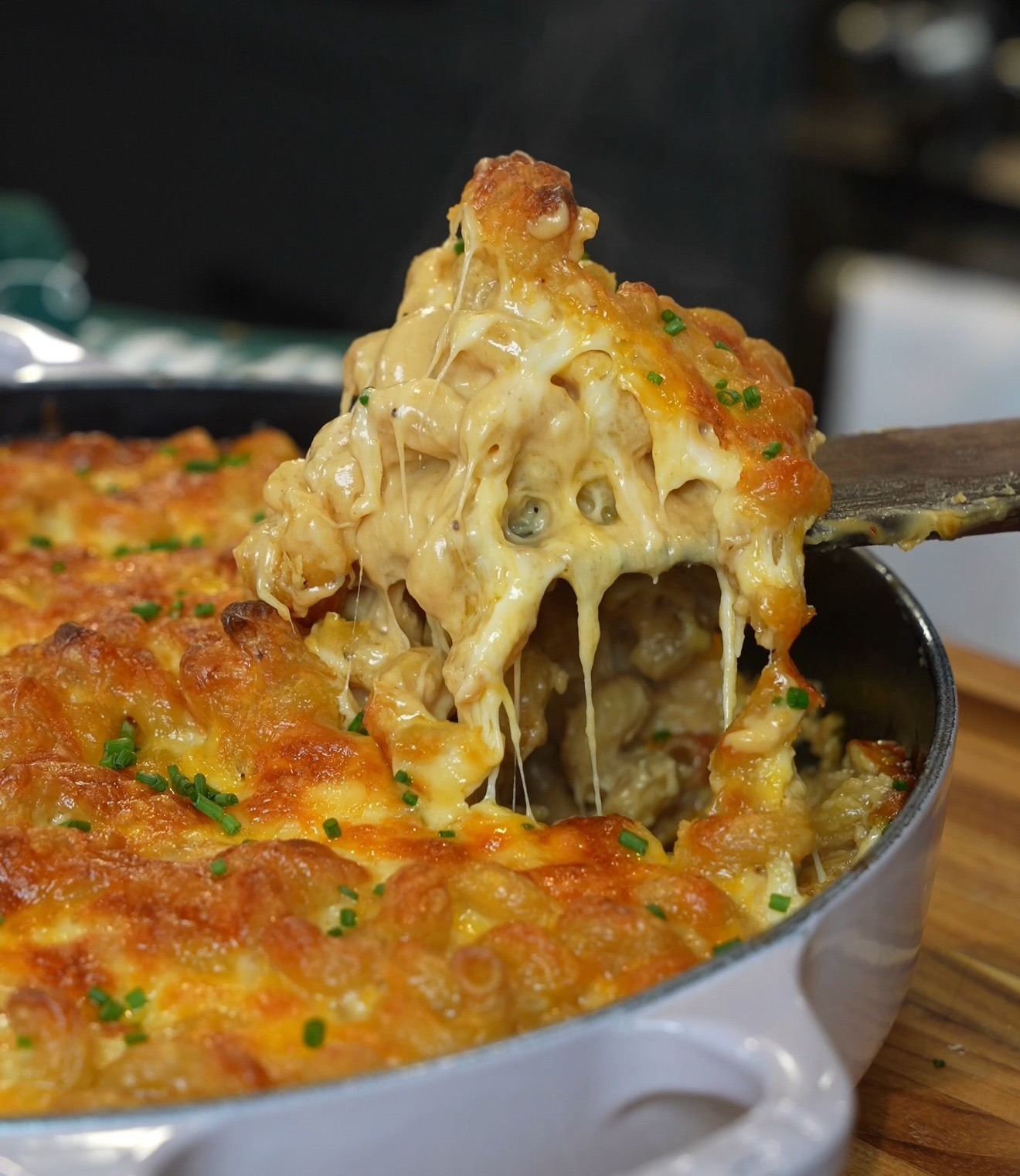 This mac and cheese recipe includes four cheeses and is flavored with various spices. Try this rich side dish with a lighter main course and veggie.